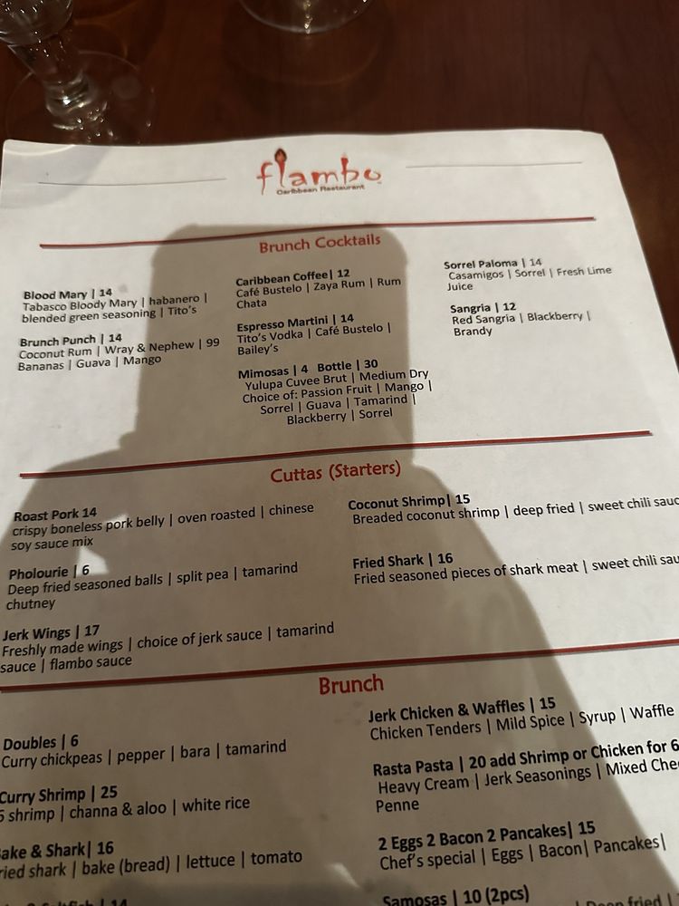 Flambo Caribbean Restaurant, located in Philadelphia, offers a taste of Trinidadian cuisine through their flavorful menu. The dinner menu features dishes like Curry Chicken, cooked in a delicious Trinidadian curry sauce, and Blackened Shrimp, prepared in a buttery blackened pepper sauce. The lunch options include Pakora Veggie and Curry Goat, showcasing the variety of flavors available. Appetizers like Bake & Shark provide a unique dining experience with fresh shark meat and a blend of spices. The restaurant allows for both delivery and takeout, making it convenient for customers to enjoy their authentic Caribbean dishes. Overall, Flambo Caribbean Restaurant combines fresh ingredients and traditional recipes to bring the vibrant flavors of Trinidad to your table.